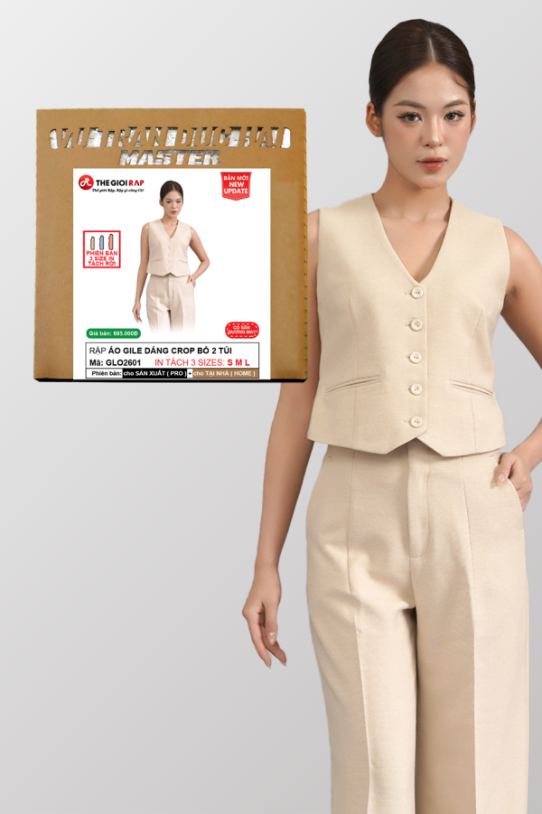 BỘ RẬP THỜI TRANG ÁO GILE DÁNG CROP BỔ HAI TÚI – 5 SIZE – S M L XL XXL GLO2601