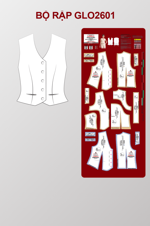 Rập Áo Gile dáng crop bổ 2 túi – 5 size – S-M-L-XL-XXL