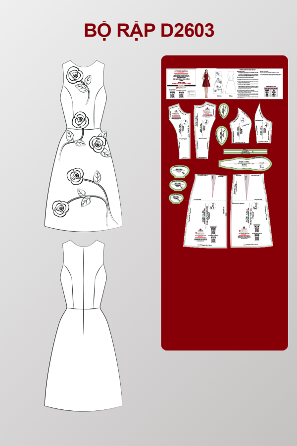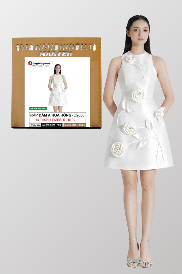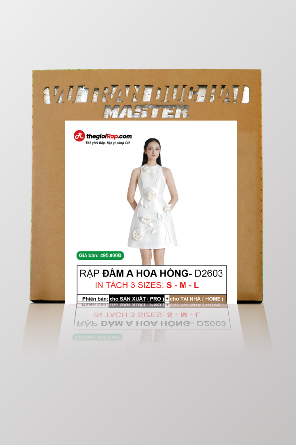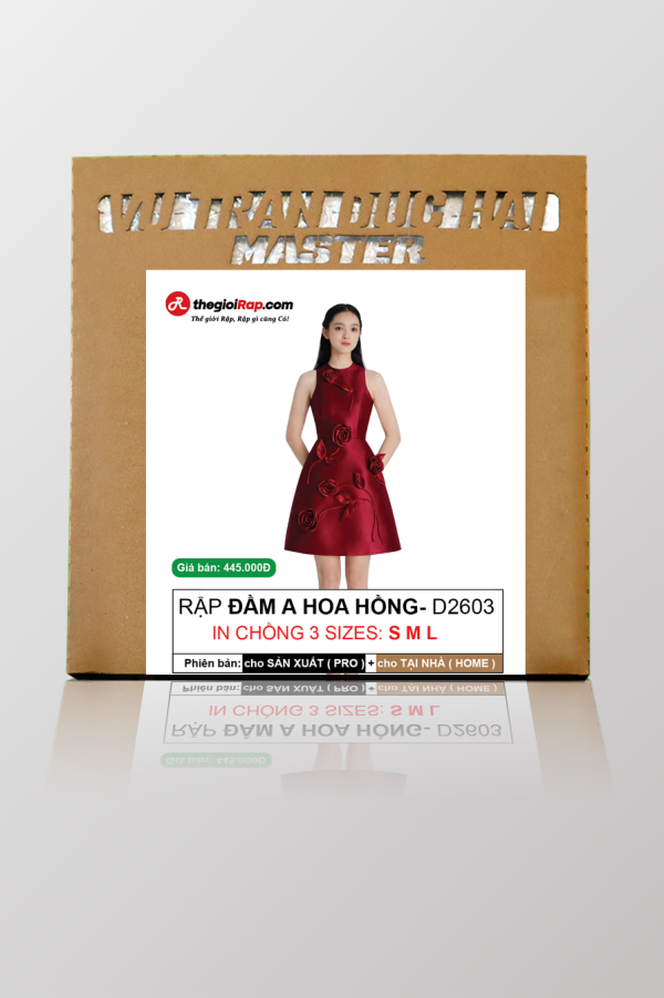 BỘ RẬP THỜI TRANG ĐẦM A HOA HỒNG – 3 SIZE – S M L D2603