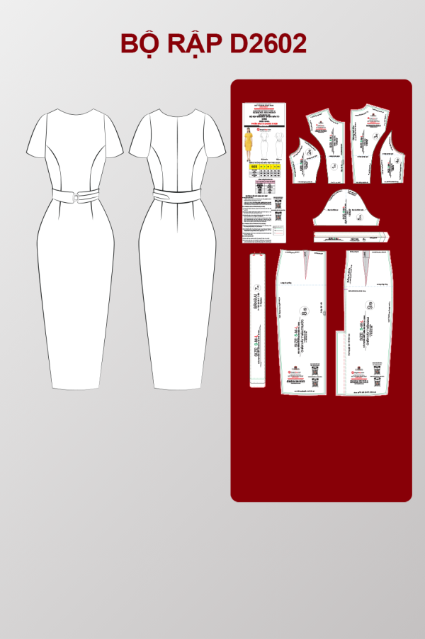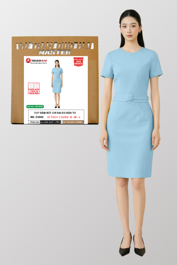 BỘ RẬP THỜI TRANG ĐẦM BÚT CHÌ ĐAI EO BẢN – 3 SIZE – S M L D2602
