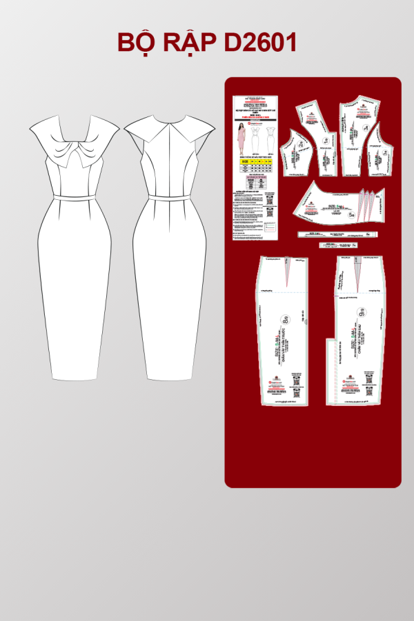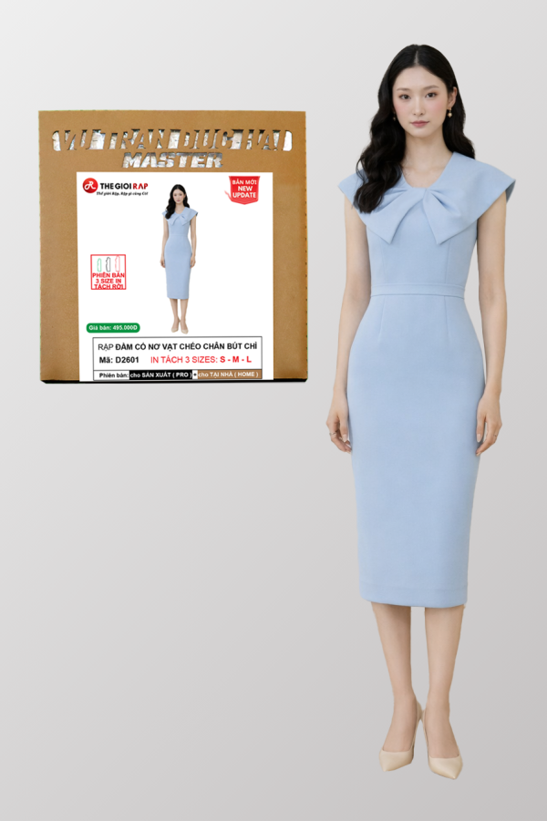 Rập Đầm cổ nơ vạt chéo chân bút chì – 3 size S M L